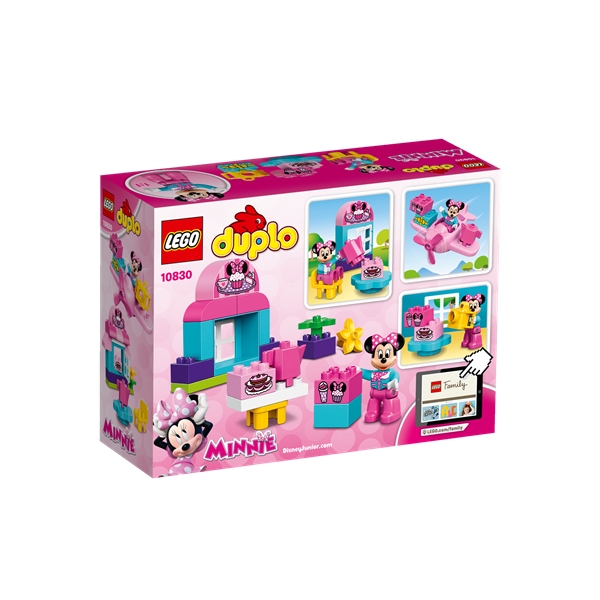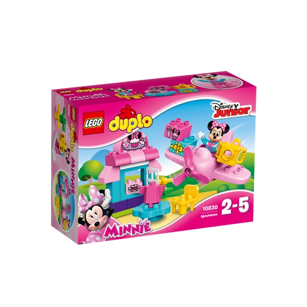 Leverera cupcakes till hela staden med Mimmi Piggs rosa flygplan! Disneys små fans kommer att älska att leka med Mimmis söta kafé. Det är enkelt att bygga med LEGO® DUPLO® klossarna, som är speciellt utformade för yngre byggare. Det finns ett bord och en stol med en tekanna för rollek och ett rosa transportplan med roterande propeller för rolig flyglek. Speciella klossar dekorerade som en tårta, cupcakes och en present hjälper små barn att hitta på egna berättelser. Innehåller en DUPLO figur: Mimmi Pigg.10830 LEGO DUPLO Mimmis kafé innehåller 27 delar.