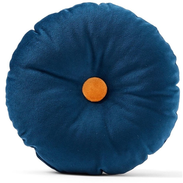 Kids Concept Sammetskudde rund blå - Rund kudde i sammet. Fin inredningsdetalj i soffan, fåtöljen, sängen, vaggan eller i spjälsängen. Mått: 23x23 cm. 100% Polyester. Tvättråd 30 grader.