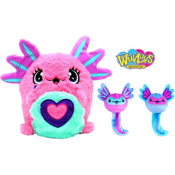 Alot-A-Lotls är de sötaste nya mammorna i stan. Den söta axolotmamman reagerar på din beröring och föder överraskningsbebisar, som mamman känner igen och älskar när du placerar dem vid mammans kind för en namnigenkännande puss. Ger också ifrån sig ljud som aktiveras vid beröring.