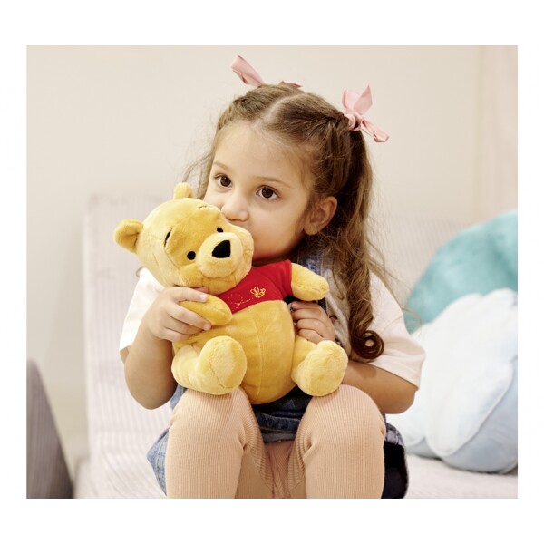 Nalle Puh, den söta björnen som älskar honung mest av allt. Detta mjuka Disney-gosedjur Nalle Puh är klätt i en röd tröja och kommer snabbt att bli en vän att krama hemma.