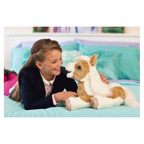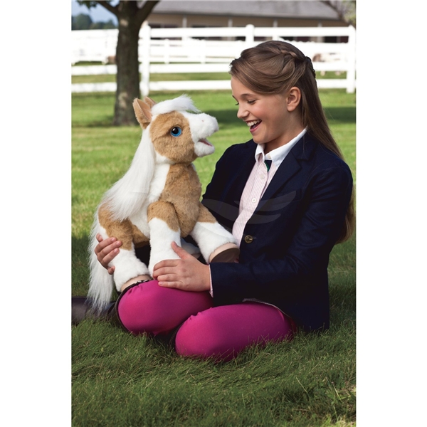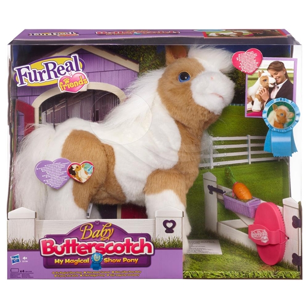 Fölet Butterschotch kommunicerar med dig genom att röra på sig och gnägga när du klappar henne. Butterschotch är rörlig så hon kan stå, ligga och sitta. Borste, leksaksmorot samt bruksanvisning medföljer.