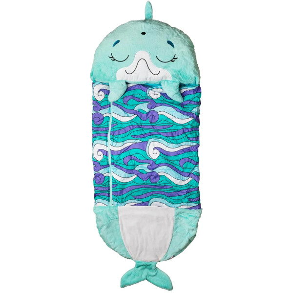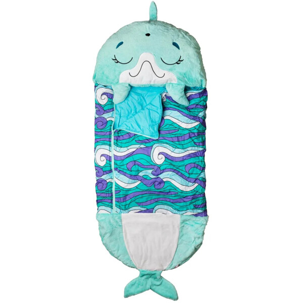 Happy Nappers Medium är en superhärlig kudde, gosedjur, lekmatta och sovsäck i ett. Använd den som mjuk kudde med ett praktiskt bärhandtag, öppna upp tryckknapparna för att vika upp den till en sovsäck eller använd som en lekmatta.