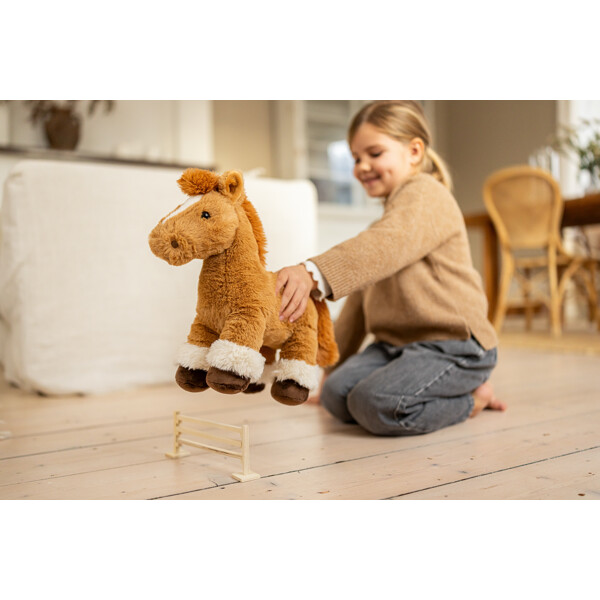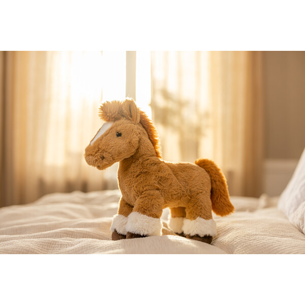 Hästar är populära djur och det gäller även som häst gosedjur. Denna är mjuk och kramgo' men tillräckligt stadig för att kunna stå själv.