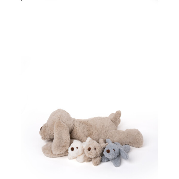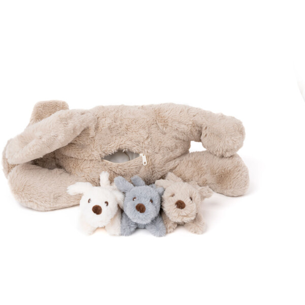 Med sin unika design är denna leksak inte bara en vanlig hund, utan också en mamma-hund och tre stycken valpar i ett. Barnet kan enkelt öppna upp magen på mamma-hunden med hjälp av ett blixtlås och plocka in och ut valparna för timmar av underhållning.