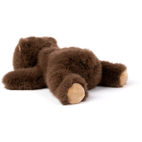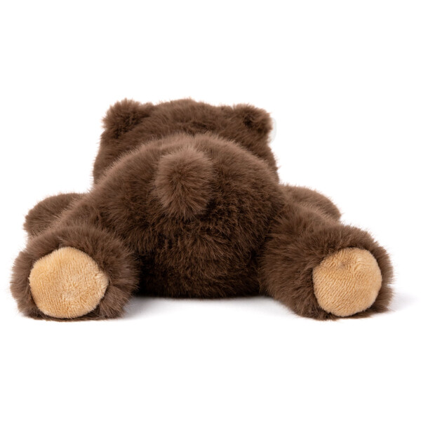 Den liggande björnen är tillverkad i ett exklusivt nytt material som liknar äkta päls, både till utseende och känsla, med en silkeslen yta. Kroppen har en lätt vikt och följsam form som gör den extra skön att hålla och krama.En perfekt kombination av lyxig känsla och trygg komfort. Passar lika bra för lek som för vila – och är en present som garanterat går hem varje gång.