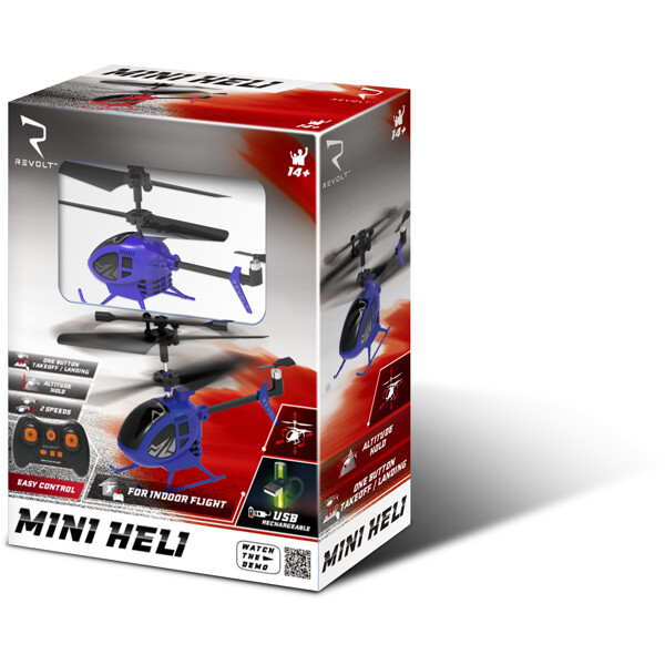 Den här 3,5 kanaler (2,4 GHz) minihelikoptern är exceptionellt smidig och lätt att flyga med bara en knapp för start och landning och automatisk svävning. Minihelikoptern är extra kraftig och byggd för att klara krascher, vilket gör att den är fantastisk för förstagångspiloter för att vässa deras flygkunskaper.