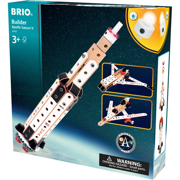Bygg en rymdikon med 34607 Apollo Saturn V från BRIO Builder. Med en höjd på 60 cm och 91 delar gör denna NASA-inspirerade raket rymdresorna verkliga.