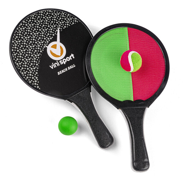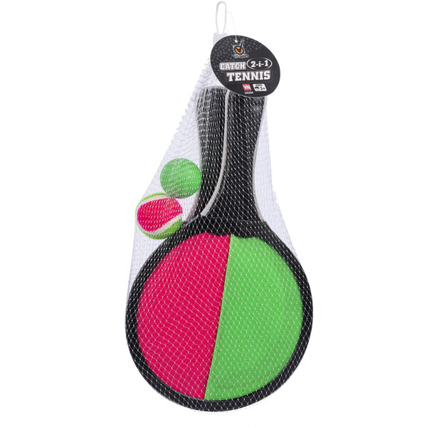 2-i-1 Strandtennis är ett bollset där du kan välja om du vill spela strandtennis eller catchball. I setet får du med två rack och två bollar.