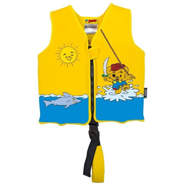 Swimpy Simväst Bamse är en gul simväst med motiv av Bamse och hans vänner som är utvecklad av svenska Swimpy som hjälper barnet att få hjälp att flyta, simträna eller bara känna sig trygg vid vattenlek.Swimpy Simväst är ett praktiskt flythjälpmedel som används för att introducera barnet till att lära sig simtag. Flytkraften i simvästen kan justeras för att passa barnets vikt. Varje ficka i västen innehåller tre lager skumskivor. Genom att ta ut en eller två skivor kan flytkraften anpassas. Simvästen är enkel att ta på barnet och stängs med blixtlås och kardborreband. Grenremmen är justerbar och anpassas efter barnets längd. Den har en utformning som ger barnet rörelsefrihet och komfort med sömmar som inte skaver mot huden.