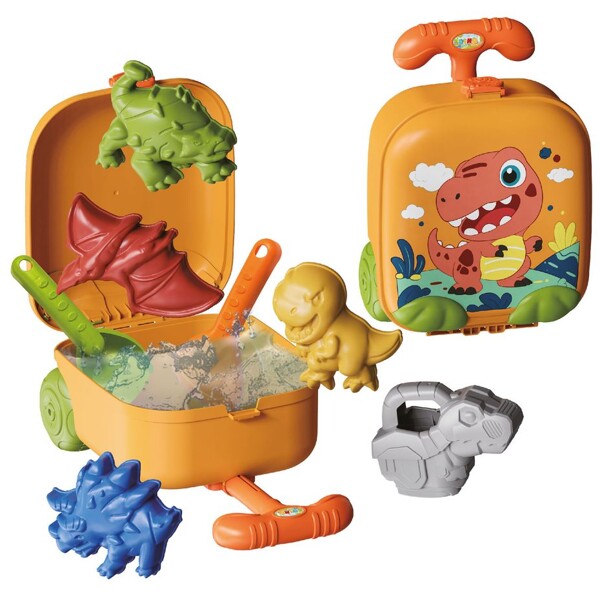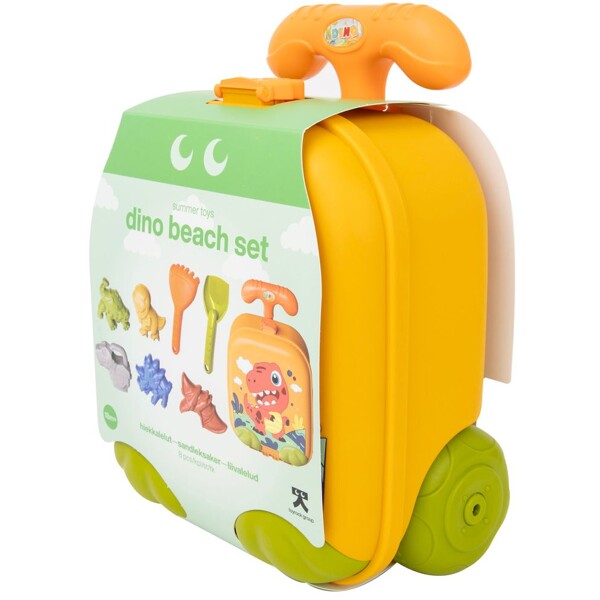 Denna praktiska resväska rymmer en spade, kratta, djurformad vattenkanna och fyra sandformar – perfekt för stranden eller sandlådan. Och den här coola vagnen kommer inte att lämnas kvar för föräldrar att dra – den är helt din!