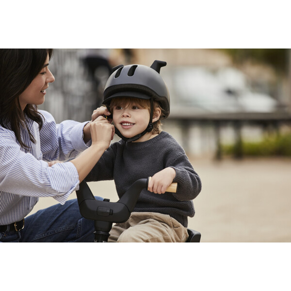Liki-hjälmen har en unik design med mjuka silikonhorn på en matt svart hjälm. Den ger maximalt skydd och komfort tack vare ett justerbart dial-fit-system som säkerställer en stabil och bekväm passform, ett vadderat justerbart hakband i nylon samt ett magnetiskt FIDLOCK®-spänne för enkel användning. Hjälmens skärm ger skydd mot solen, medan ventilationsöppningar säkerställer optimalt luftflöde och håller ditt barn svalt och bekvämt under alla äventyr.