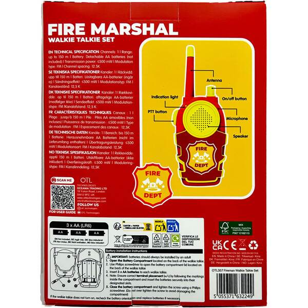 Varje walkie talkie kräver 3 AA-batterier (ingår ej), så se till att ha några till hands för oändligt med skoj. Det här setet är den ultimata presenten till alla som älskar brandmän och ger timmar av underhållning och fantasifull lek.