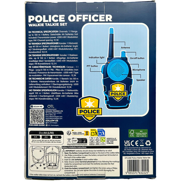 Varje walkie talkie kräver 3 AA-batterier (ingår ej), så se till att ha några till hands för oändligt med skoj. Det här setet är den ultimata presenten för polisentusiaster och ger timmar av underhållning och fantasifull lek.