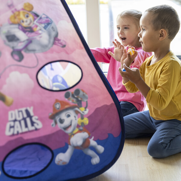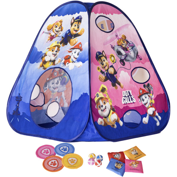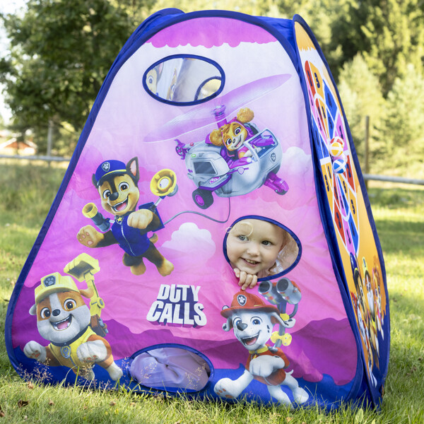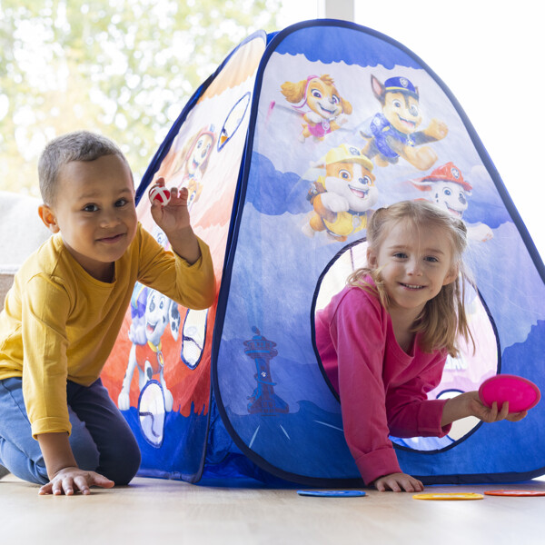 Det här färgglada pop-up lektältet bjuder in till lek och tävling i sann PAW Patrol-anda!