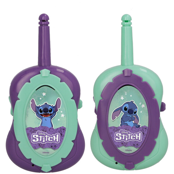 Walkie-talkies för barn med Stitch-tema, perfekta för fantasifull lek! Ska vi vara poliser, spioner eller rymdskeppspiloter idag? Förpackningen innehåller två walkie-talkies.