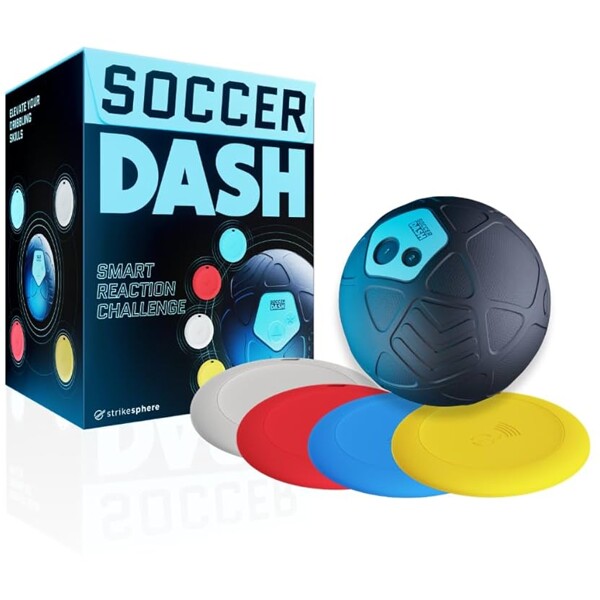 Förvandla vilket utrymme som helst till en träningsarena med Soccer Dash – den helt nya interaktiva fotbollstränaren. Med en smart boll med inbyggda kontroller och fyra ljudemitterande mål skapas spännande utmaningar som anpassar sig efter din nivå. Förbättra din dribbling, bollkontroll och reaktionsförmåga genom 6 träningslägen.Smart interaktiv träning – Premium boll i storlek 1 av PU-skum med inbyggda kontroller som kopplas till 4 ljudkänsliga måldiskar via RFID-teknik, spårar dina framsteg och anpassar sig efter din skicklighet.Mångsidigt spelupplägg – 6 spännande spellägen inklusive träningsutmaningar, tävlingsspel och lagspel för både ensamträning och grupputmaningar.Allvädersanpassad – Hållbar konstruktion för både inomhus- och utomhusbruk med obegränsade konfigurationsmöjligheter för att hålla dig motiverad.