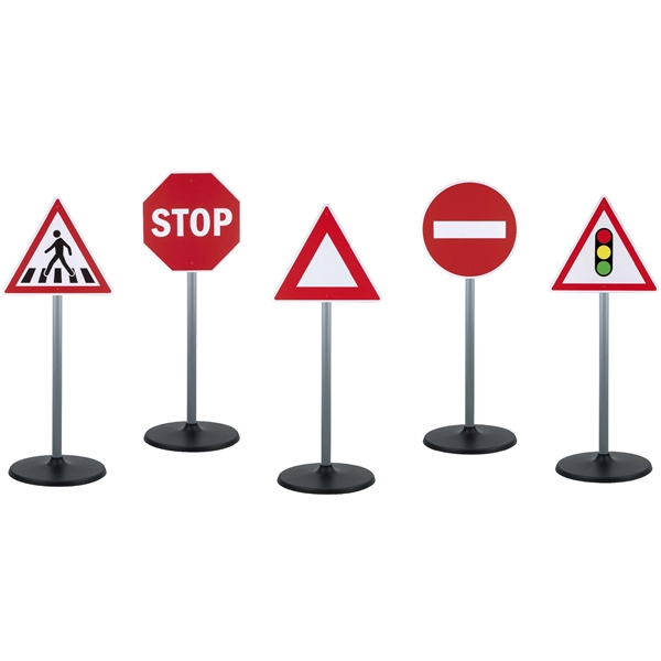 Barn kan vara några riktiga fartdårar ibland, med de här trafikskyltarna kan ditt barn lära sig trafikreglerna och öva sig på att navigera mellan de olika skyltarna som de möter ute på vägarna. Ca 75 cm höga.