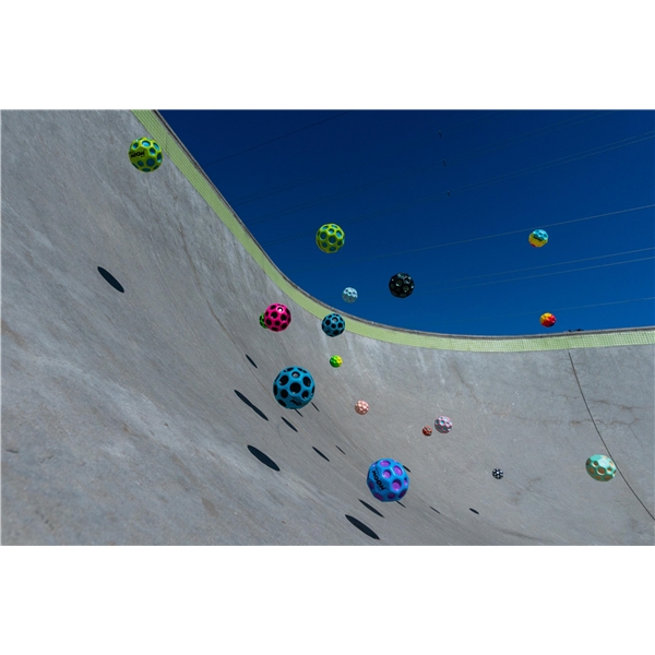 Månklotet är 63 mm stor och hoppar upp till 30 meter.
