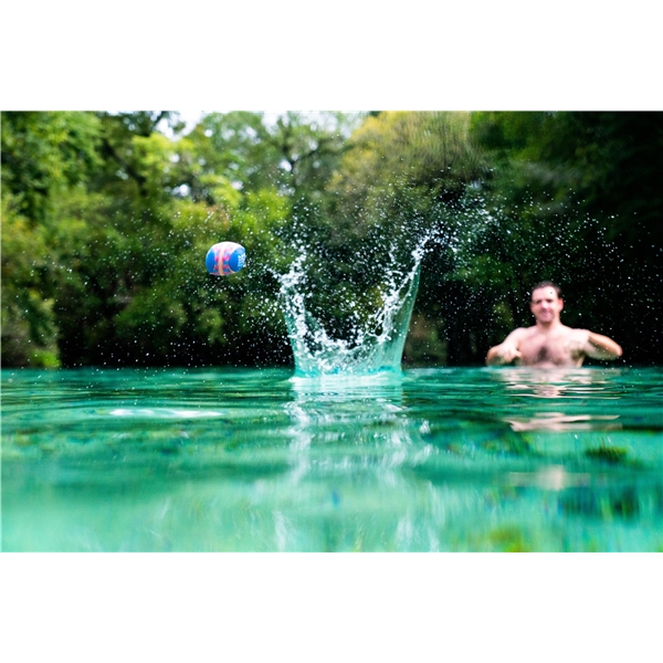 Den svenska klassikern! Original vattenhoppbollen för de dagarna när du ska ut på en resa till stranden eller sjön. Bollen har en gelékärna, är mjuk och smidig och den studsar både högt och långt.