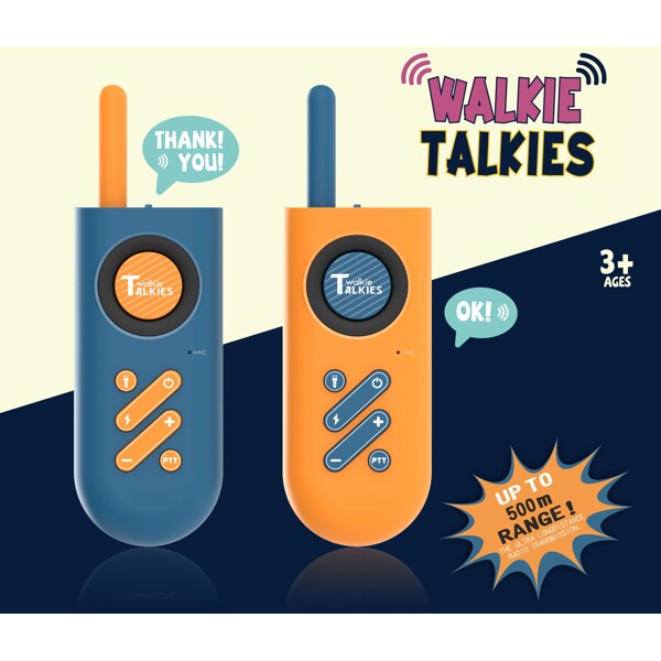 Walkie-Talkies innehållande två olika färger på sändare. Räckvidd upp till 500 m.