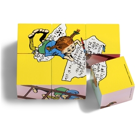 Med dessa härliga klossar får du sex olika Pippipussel i ett. Varje sida har en egen bakgrundsfärg så man lätt ser vilka sidor av klossarna som hör ihop. Illustrationerna på pusselklossarna är gjorda av Ingrid Vang Nyman. Mått 13,5x9 cm. Mått 13,5x9 cm.