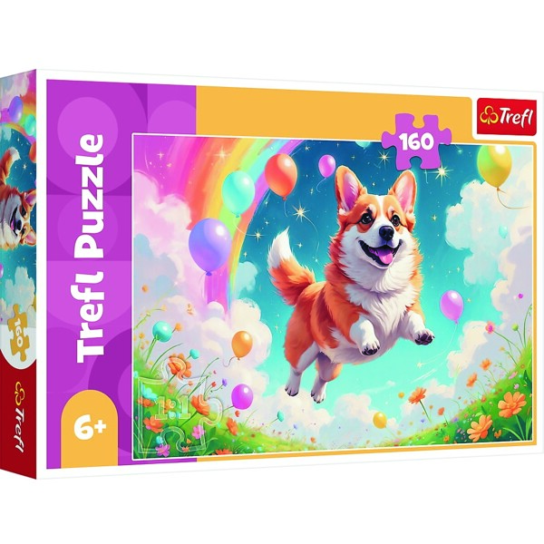 Människans bästa vän är ett pussel med 160 bitar som kommer att glädja unga djurälskare. När pusslet väl är monterat skapar det en bild av en hoppande hund med ballonger och regnbåge.