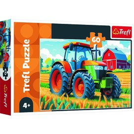 Pussel 60 Bitar Trefl Farmer's Vehicle är ett pussel med 60 bitar designat med unga bilentusiaster i åtanke. Motivet visar en stor traktor ute på fältet framför ladan.
