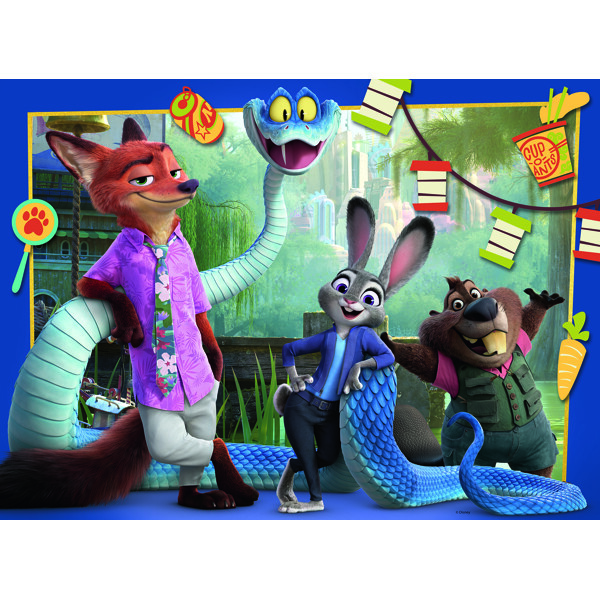 Pussel XXL 100 Bitar Zootopia 2 är ett ljust och färgglatt pussel med 100 bitar i extra stort format med ikoniska karaktärer inspirerade av den nya filmen Zootopia 2.