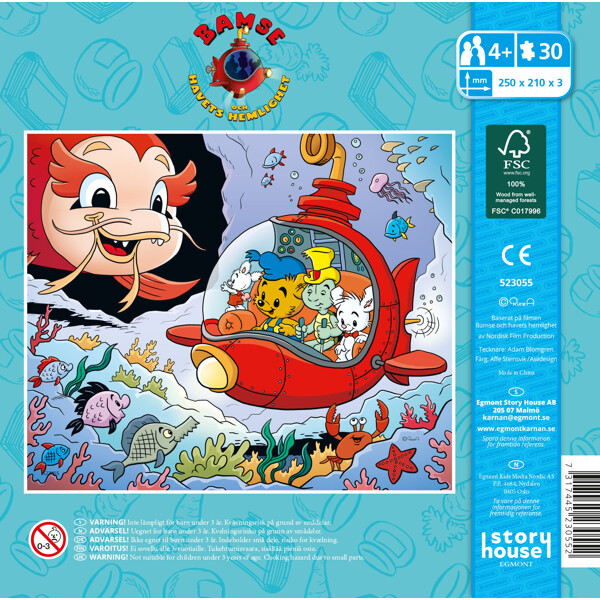Ett 30-bitars träpussel med ett motiv från filmen Bamse och havets hemlighet.