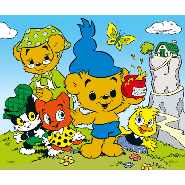 Ett fint träpussel med motiv av Bamse och hans vänner som små.