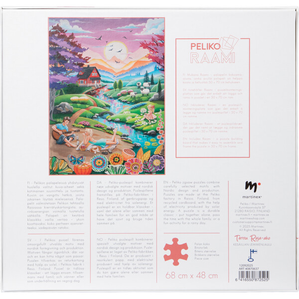 Innehåller pusselunderlägget Peliko Raami, som gör det enkelt att bygga och rama in bilden i en standardram på 50 x 70 cm.