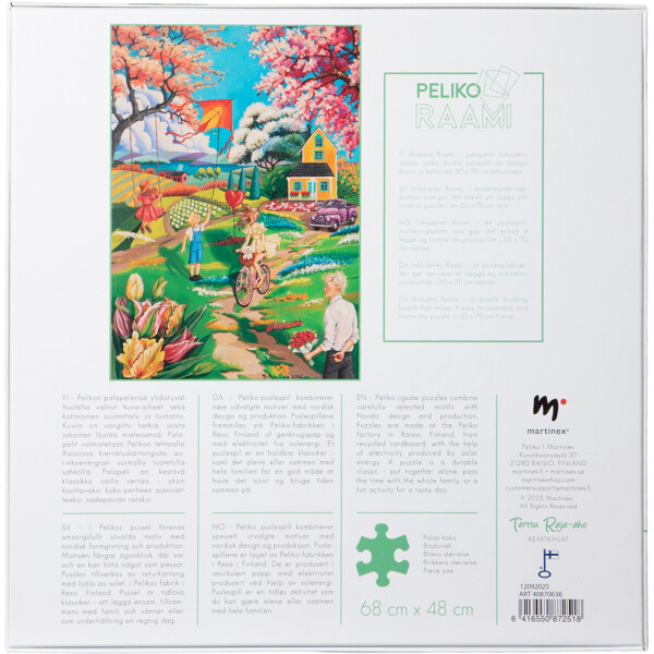 Innehåller pusselunderlägget Peliko Raami, som gör det enkelt att bygga och rama in bilden i en standardram på 50 x 70 cm.
