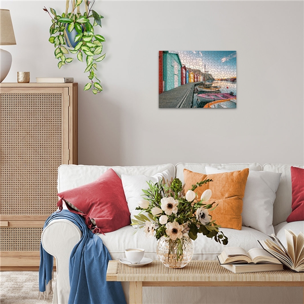 Pussel 500 Bitar Boathouses in Smögen är ett motiv från Smögen med vackra, färgglada båthus på en brygga.