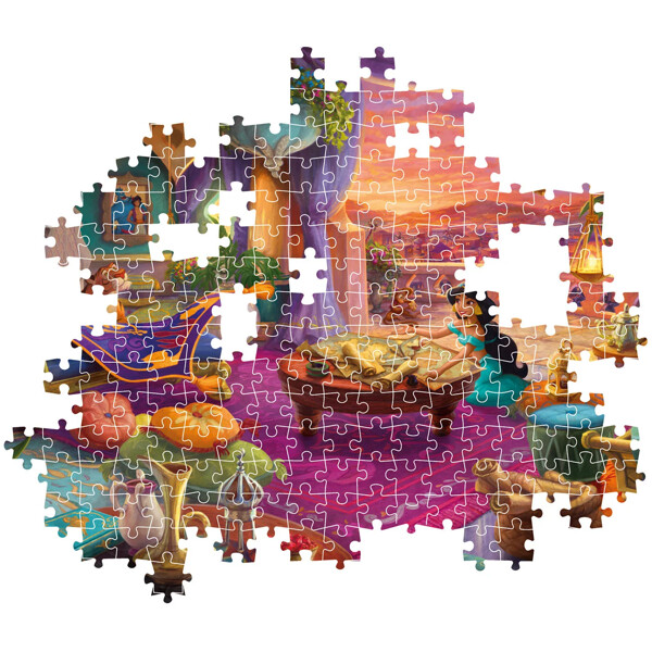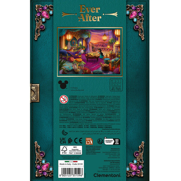 Det här 500-bitarspusslet erbjuder en premiumupplevelse med en vackert konstnärlig avbildning av Disneys prinsessa Jasmine. Den unika bilden har förstärkts med extra detaljer och en raffinerad design, vilket gör det till ett pussel som sticker ut för alla pusselentusiaster. Förpackningen har en soft touch-beläggning och glansiga finishar på ädelstenarna, vilket ger en touch av elegans och gör det till ett perfekt samlarobjekt för din bokhylla.
