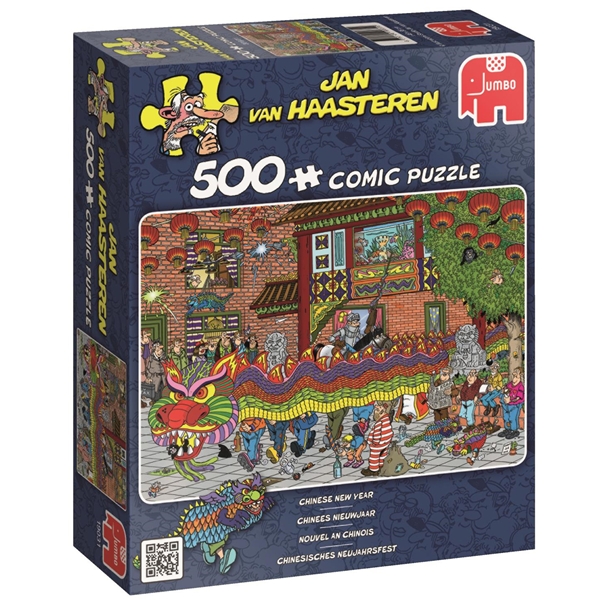 Pussel Chinese New Year 500 bitar är ett pussel med roligt motiv som visar hur det kan se ut när man firar kinesiskt nyår!Jan Van Haasteren är en holländsk illustratör som är känd för att göra otroligt detaljerade, färgglada och framförallt humorfyllda illustrationer, exklusivt för Jumbo. De flesta av Jans fans letar genast efter hans kännetecken – en hajfena, som finns med på alla hans pussel. Något annat man ofta ser i hans illustrationer är ett självporträtt av Jan. Kan du hitta det på ditt nya pussel?