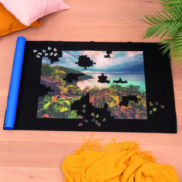 Ravensburger Pusselmatta är ett smidigt och praktiskt hjälpmedel när du vill kunna lägga undan eller förflytta ett pågående pussel.Pusselmattan är lämplig för pussel 300-1500 bitar. Så här enkelt kan du med pusselmattans hjälp flytta ditt pussel:Lägg ditt favoritpussel på pusselmattan.Sätt ihop de 8 halvtuberna till 4 tub sektioner. Placera tuben vid pusselmattans kant. Rulla försiktigt tuben över mattan med ett jämnt tryck.Fäst de elastiska banden runt pusselmattan. Nu kan du enkelt ta med ditt pussel till sommarstugan eller bara flytta det från bordet när det är dags att äta.Ravensburger Pusselmatta innehåller 1 st pusselmatta, 1 plasttub och 2 st elastiska band.Ravensburger har tillverkat pussel i Ravensburger, Tyskland ända sedan 1891. De har nått sin framgång hos pusselentusiaster över hela världen tack vare sin noggrannhet i alla detaljer. Ravensburger använder enbart en extra tjock papp som är speciellt utvecklad av och för Ravensburger. De kombinerar den tjocka pappen med sitt fina linnestrukturerade papper för att åstadkomma den matta, glansfria ytan som andas kvalitet och som du kan känna med dina händer. För att kunna garantera att det inte finns två likadana bitar och för att säkerställa den perfekta passformen som gjort Ravensburger världskända har de utvecklat sina egna skärmaskiner.