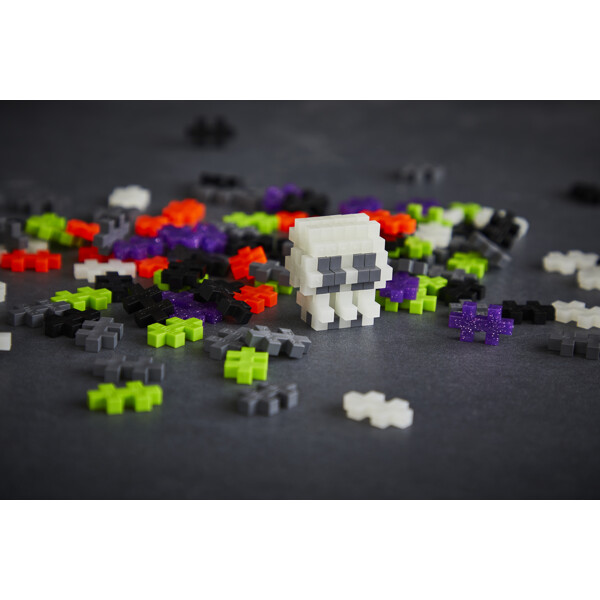 I denna mix får du 240 Plus-Plus i färgerna Glittrande lila, Neon Orange, Självlysande, Lime, Svart och Mörkgrå. Det är den perfekta kombinationen av färger för att sätta i gång det kreativa byggandet och skapa en kuslig stämning. Du kan skapa precis vad du vill med Plus-Plus Spooky Färgmix, eftersom mixen uppmuntrar fri lek utan specifika instruktioner. Släpp bara lös fantasin och låt den leda vägen.