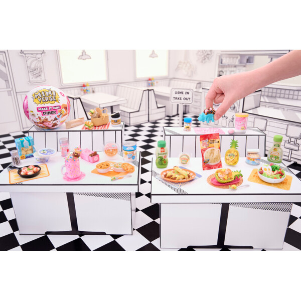 Bekanta dig med MGA:s Miniverse, Make It Mini Food! Original samlarobjektet som du kan tillverka, bota och visa upp. Varje kula innehåller realistiska mini-"ingredienser" och kökstillbehör som gör att du kan göra dina egna minikopior av dina favoriträtter och drycker.