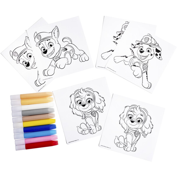 Med detta roliga pysselset kan barnen måla tre olika PAW Patrol-motiv på plastdekaler, som sen lätt fästs på fönster eller glasytor. Dekalerna kan enkelt flyttas och lämnar inga märken eller limrester på fönstret. Setet innehåller tio olika målarfärger, så barnen kan välja sina favoritfärger och göra varje bild unik.
