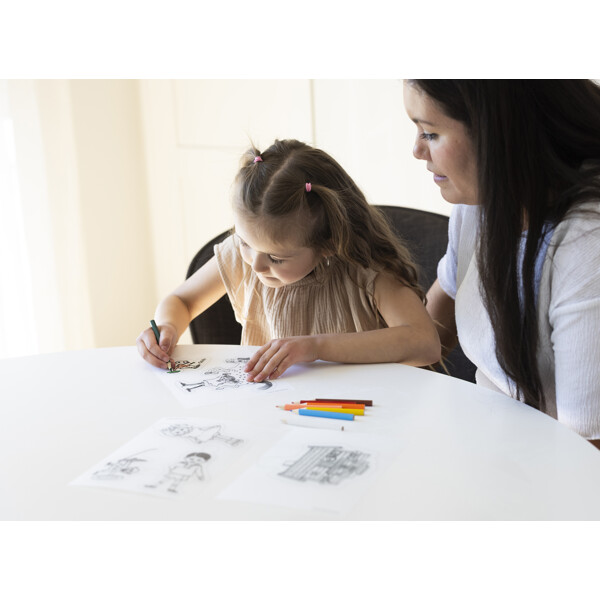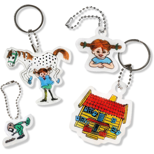 Setet innehåller fyra ark krympplast med sju motiv, tio pennor, två nyckelringar och nio kedjor. Allt som behövs för ett kreativt och roligt pyssel till alla små Pippi-älskare!
