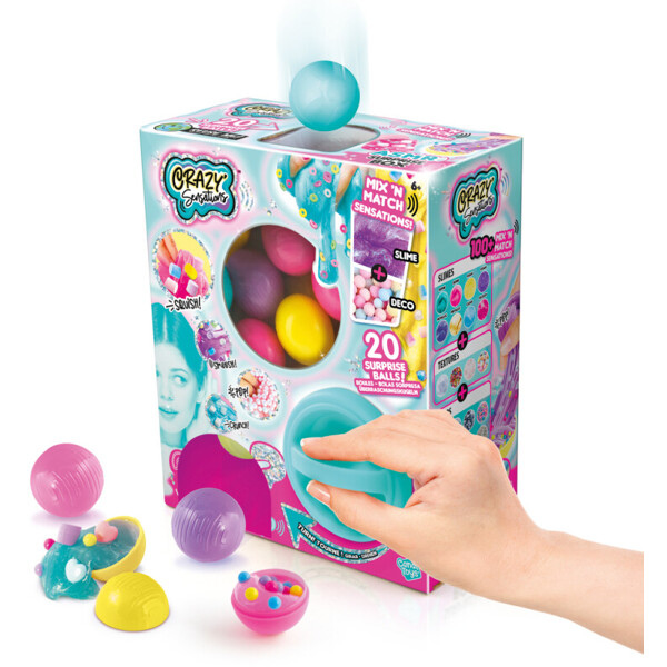 Lek med 20 bollar och upplev slime med unika texturer och dekorationstyper för den ultimata ASMR-sensoriska upplevelsen. Lådan är återanvändbar.