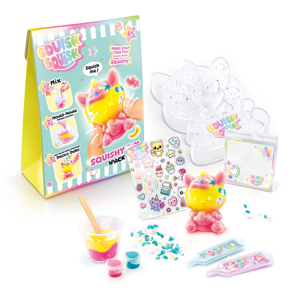 Den supermjuka, ultrasquishy konsistensen gör den extra härlig att dekorera. Välj dekoration, sätt fast den och skapa din alldeles egna unika och kramvänliga squishy. Perfekt för kreativa och avkopplande lekar!