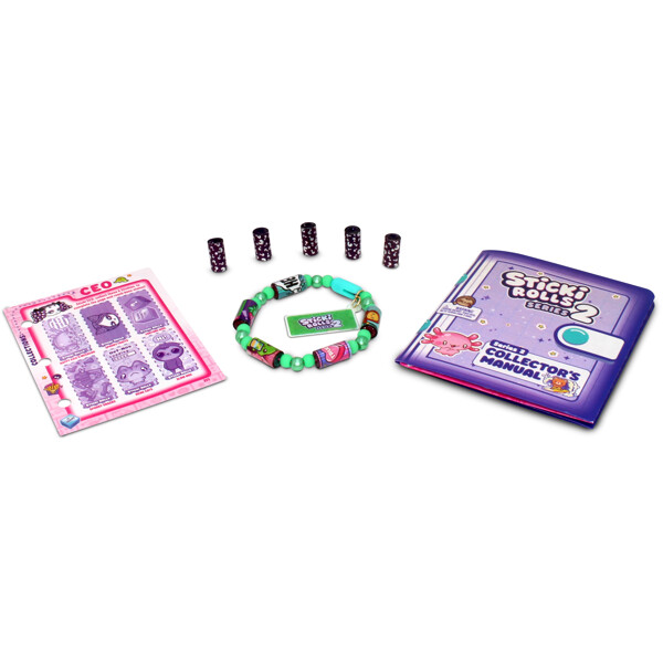 Sticki Rolls Sticki Series 2 är här! Med hela 1 200 helt nya klistermärken att samla – nya designer, nya karaktärer och dessutom en comeback av några fanfavoriter från serie 1! Dessutom finns fem helt nya holografiska stilar att samla, i alla sällsynthetsnivåer.Glöm klistermärkesark – med Sticki Rolls förvandlas klistermärkesleken till trendiga accessoarer! Varje Sticki Band-armband rymmer 5 rullar med klistermärken, och varje rulle innehåller 10 unika Kawaii-inspirerade designer. Dra, vrid och klistra – enkelt och roligt!Dessutom ingår två hemliga Mystery Reveal Sticki Rolls, vilket ger totalt 70 klistermärken i varje set! Dekorera din mobil, vattenflaska eller laptop – eller byt med vänner för att bygga din samling. Med det unika Quick-Grip Clasp-systemet är det superenkelt att byta rullar och skapa oändliga kombinationer.