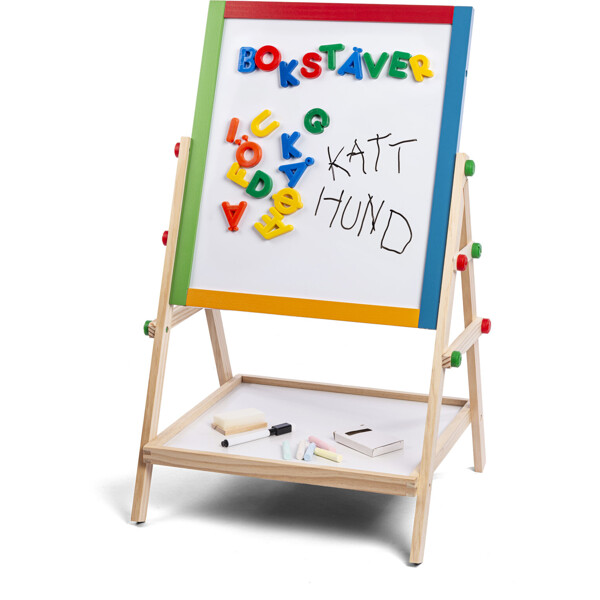 Ett smart 3-i-1-staffli som kan användas som griffeltavla, whiteboardtavla och magnettavla. Med en praktisk förvaringshylla under tavlan.