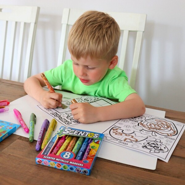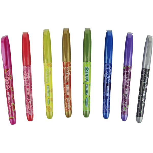 Doftande, metalliska färgtuschpennor som kombinerar färgläggningsaktiviteter och härliga dofter. Perfekta produkter för kreativa och roliga familjelekar.