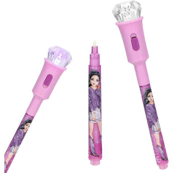 TOPModel-pennan för hemliga meddelanden skriver med osynligt bläcksom först blir synligt när det belyses med diamantens UV-ljus.