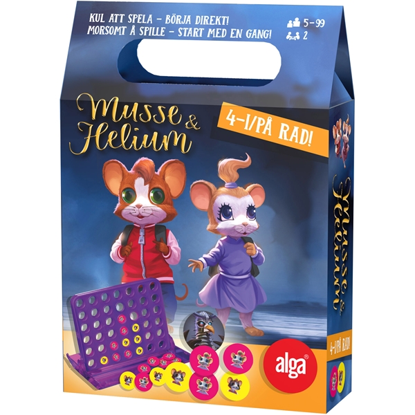 4-i-rad är ett av Musse & Heliums favoritspel. Bestäm vem som börjar och lägg sedan varannan marker och försök få 4-i rad. Det kanske ser lätt ut men du ska se att det är lite knepigt. Ska det bli du eller kompisen som vinner? Guldostar ligger i potten! Men se upp för Duvjägarna, kanske tar de vinsten ifrån dig!
