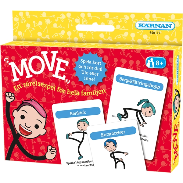 Move kortspel är ett kul rörelsespel för hela familjen som ger er massor av roliga och aktiva utmaningar. Spelet kommer att få er att hoppa, visa styrka, få upp pulsen och mycket mer som låter er ha en rolig gympa-stund tillsammans. Personen som först blir av med sina kort vinner spelet!