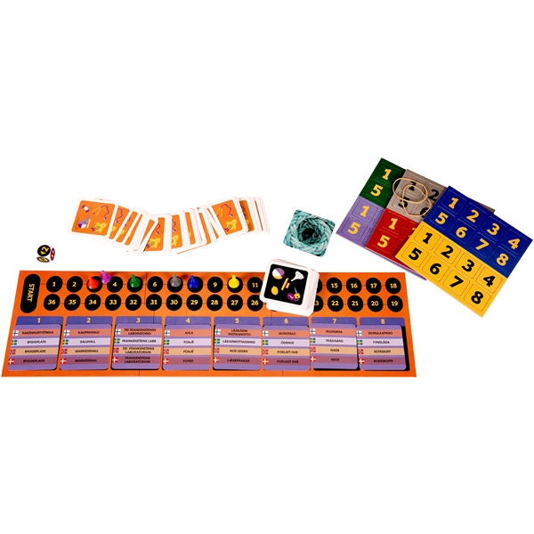 Innehåller kort och regler på svenska, finska, norska och danska.