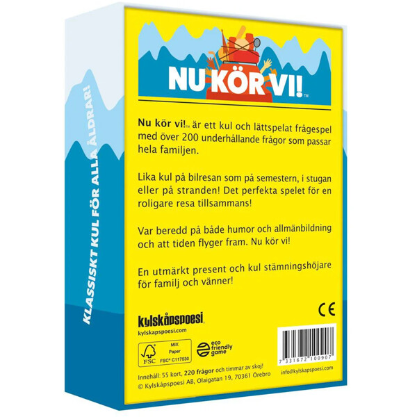 Det här engagerande frågespelet, "Nu Kör Vi!", är utformat för att underhålla hela familjen med över 200 frågor. Det är perfekt för att göra bilresor, semestrar och stranddagar roligare. Spelet kombinerar allmänbildning med humor och ser till att tiden flyger iväg medan du spelar. Oavsett om ni är i stugan eller på resande fot är det här spelet den perfekta följeslagaren för en rolig resa tillsammans.